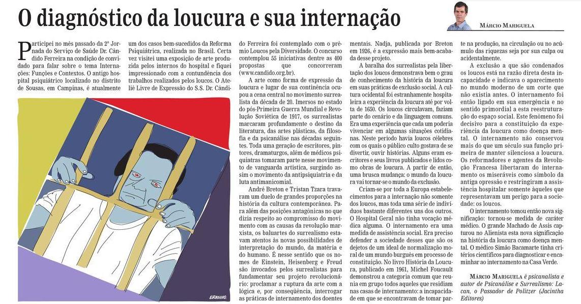 Artigos, Jornais O diagnóstico da loucura e a sua internação 05/12/2010 Márcio Mariguela Artigo publicado em 5 de Dezembro de 2009 no Jornal de Piracicaba: